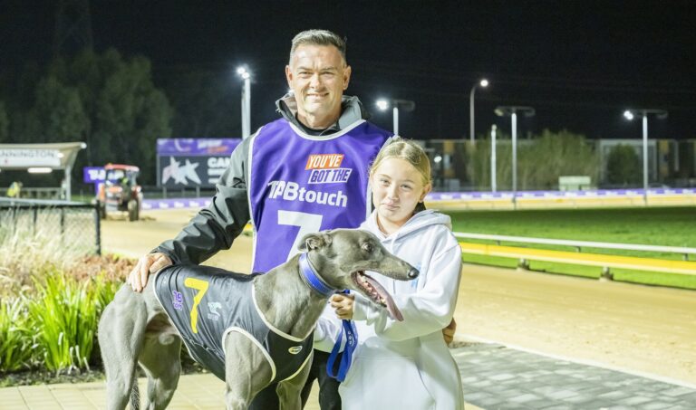 Jumping cleanly from box four, the Tommy Shelby x Boscono flyer, trained by Robert Ayres, surged through the centre of the track to reel in early leader Mr O’Malley (8) and claim victory by two lengths in 19.59 seconds. Idea’s Girl finished strongly to round out the placings.