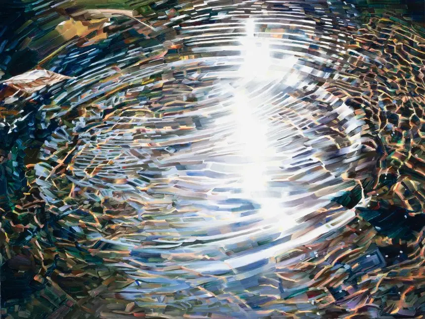 In Some Things Too Bright to See, Anderson transforms fleeting light into shimmering fields of colour, revealing how sunlight can alter our sense of space and self. Her paintings invite viewers to slow down and see the celestial within the everyday — whether in ocean horizons or quiet domestic corners.