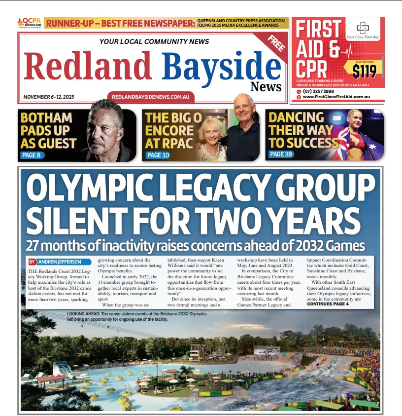 After more than two years of inactivity, the Redlands Coast 2032 Legacy Working Group has finally reconvened, following pressure from the Redland Bayside News over the city’s readiness to secure lasting benefits from the Brisbane 2032 Olympic and Paralympic Games.